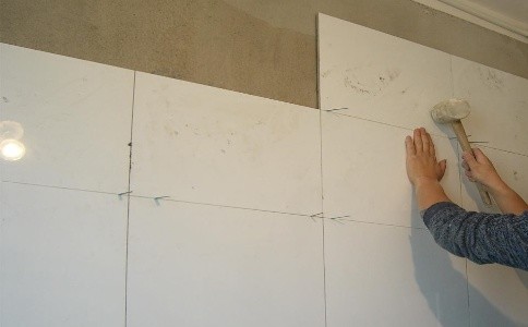 在粘贴的过程中,要步步落实,一定要认真仔细地检查瓷砖粘合剂是否让瓷砖粘紧了墙面。